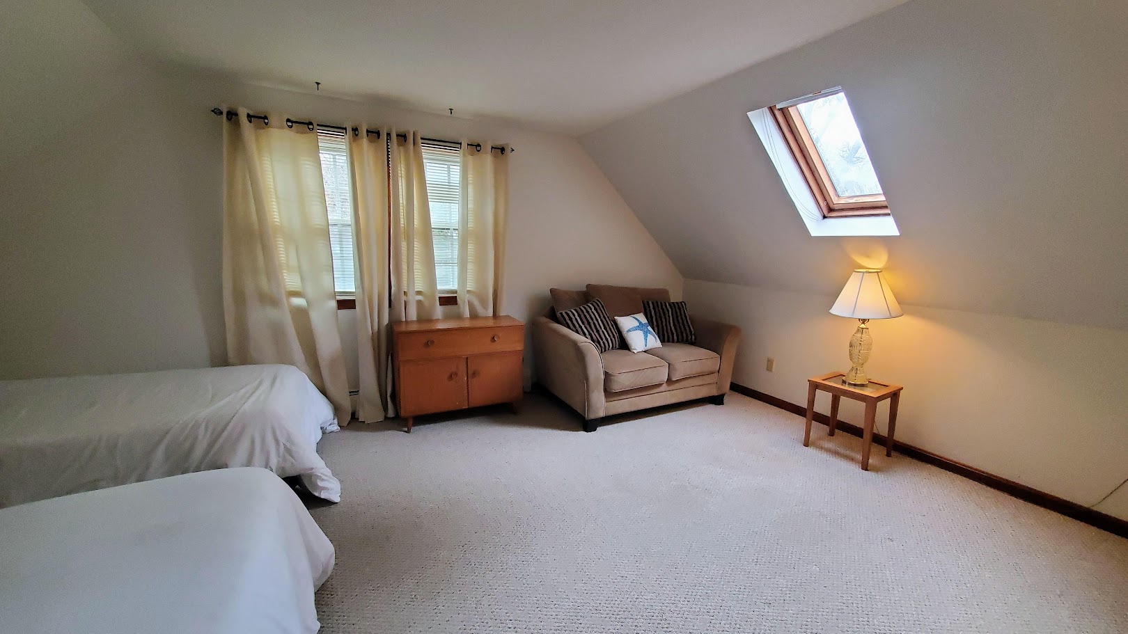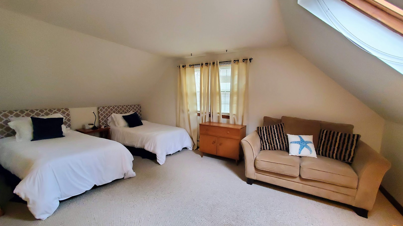Balcony, Deck, Patio, or Porch, Basement W/ Dehumidifier, First Floor Open Floor Plan, Full Basement, Furnished or Not You Decide, Gas Stove Top/Oven, Kitchen/Dining Combo Area, Mini-Split Heating and Cooling System, Natural Gas Heat Utility, Outdoor Shower Not Enclosed, Skylight(s), Spring/Fall & Lawn Care Property Maintenance Included, Tile floor(s), Town Water, Washer & Dryer Included